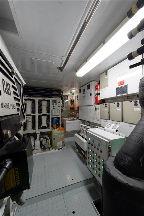 Engine Type: (2) Caterpillar 3516 HD, rated @3.384 hp @ 1800 rpm with automatic exhaust actuation below water line